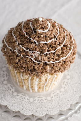 Is'nt this the yummiest rice crispy treat ever????!!!! This is made in a cupcake pan with regular and cocoa rice crispies. Amanda if you were here I would make you one of these!